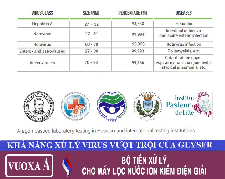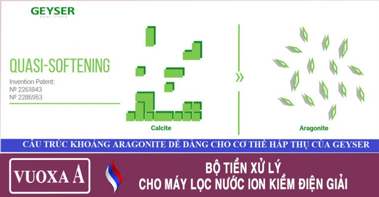 Bộ tiền xử lý Geyser Vuoxa A cho máy lọc nước ion kiềm điện giải được tập đoàn Geyser hàng đầu của Nga nghiên cứu và sản xuất. Sản phẩm sử dụng cho máy lọc nước ion kiềm điện giải này được tích hợp công nghệ Quasi-Softening. Đây là công nghệ đỉnh cao được cấp bằng Patent số: 2286953.