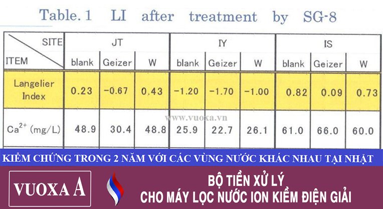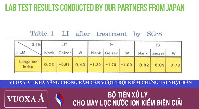Kết quả cuộc kiểm tra cho thấy nước sau khi sử dụng bộ lọc Geyser có chỉ số LI thấp. Chỉ số này chứng minh sản phẩm giúp chống bám cặn vượt trội hơn hẳn so với các công nghệ lọc khác như màng sợi rỗng hay công nghệ UF.