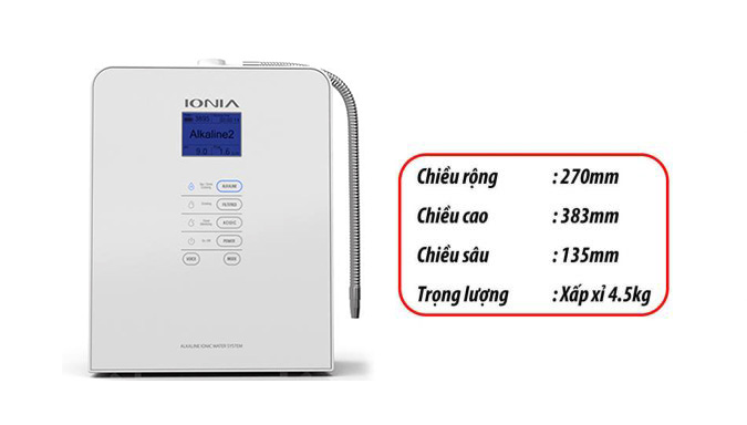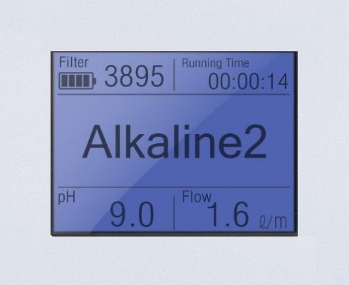 Màn hình LCD trên máy cho biết các thông tin như loại nước sử dụng, lưu lượng, độ pH, thời gian lấy nước, tuổi thọ lõi lọc tinh trong máy….