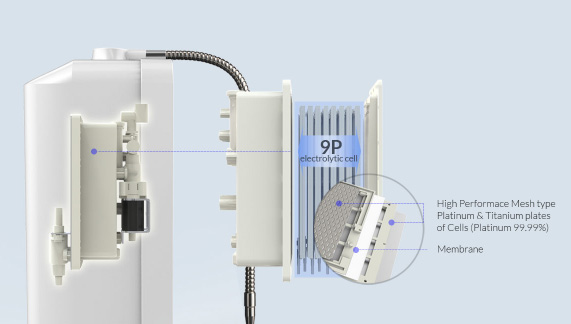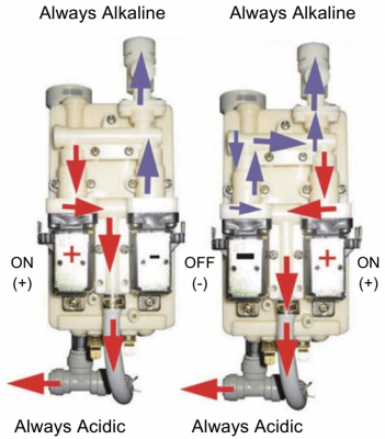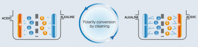 Hệ thống kết hợp van đảo chiều với điện cực được đảo chiều liên tục mỗi 20 giây một lần giúp cho các khoáng chất không thể bám lên bề mặt điện cực, đảm bảo điện cực được làm sạch liên tục và hoàn toàn tự động trong suốt quá trình sử dụng máy.