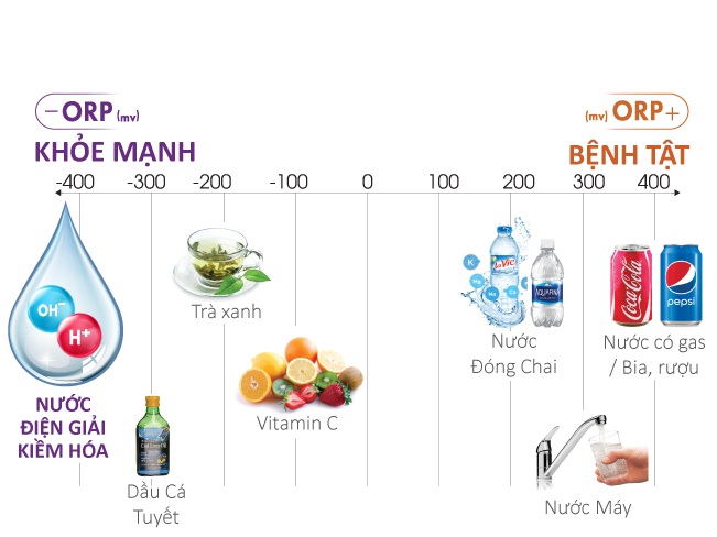 Nước Kangen có khả năng chống oxi hóa mạnh mẽ hơn hẳn, trong khi hầu hết các loại nước trên thị trường: nước đóng chai, nước máy, nước ngọt có gas, bia, rượu đều bị oxi hóa